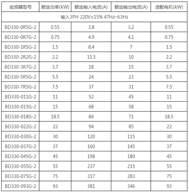 AC380V系列額定參數(shù):