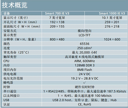 3、SMART LINE V3系列操作面板技術(shù)參數(shù)