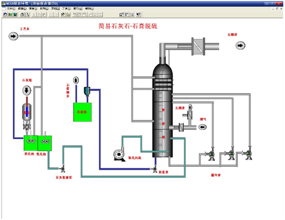 監(jiān)控級運行可實現(xiàn)實時數(shù)據(jù)采集和控制軟件(組態(tài)軟件)完成煙氣脫硫系統(tǒng)監(jiān)控與管理。監(jiān)控范圍包括:現(xiàn)場控制設備的啟停操作及運行狀態(tài);脫硫控制系統(tǒng)的動態(tài)參數(shù);脫硫除塵后煙氣中煙塵、SO2排放濃度。整個系統(tǒng)功能范圍內(nèi)的全部報警項目可在顯示器上顯示并可在打印機上打印。